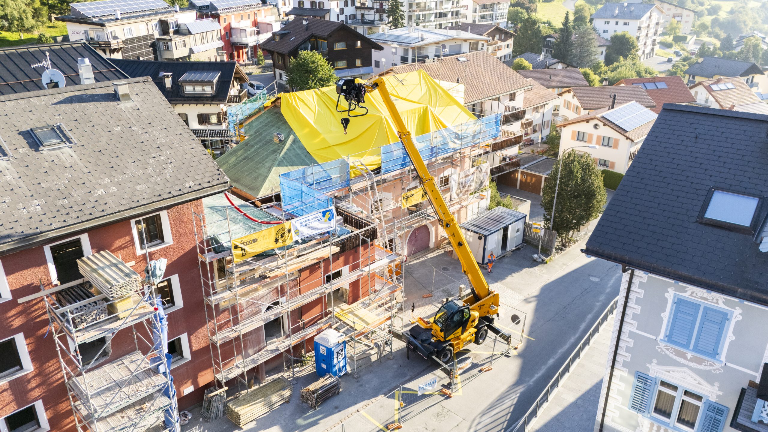 Mit unserem Pegasus erreichen wir auch unter grosser Last mühelos Dächer und höher gelegene Objekte. Das macht ihn zum idealen Helfer bei anspruchsvollen Arbeiten rund ums Dach und Fassaden an schwer zugänglichen Bereichen. Dank seiner Reichweite und Tragkraft setzen wir den Pegasus gezielt dort ein, wo herkömmliche Lösungen an ihre Grenzen stossen — sicher, effizient und präzise. Hier finden Sie eine Doku über unseren Pegasus: